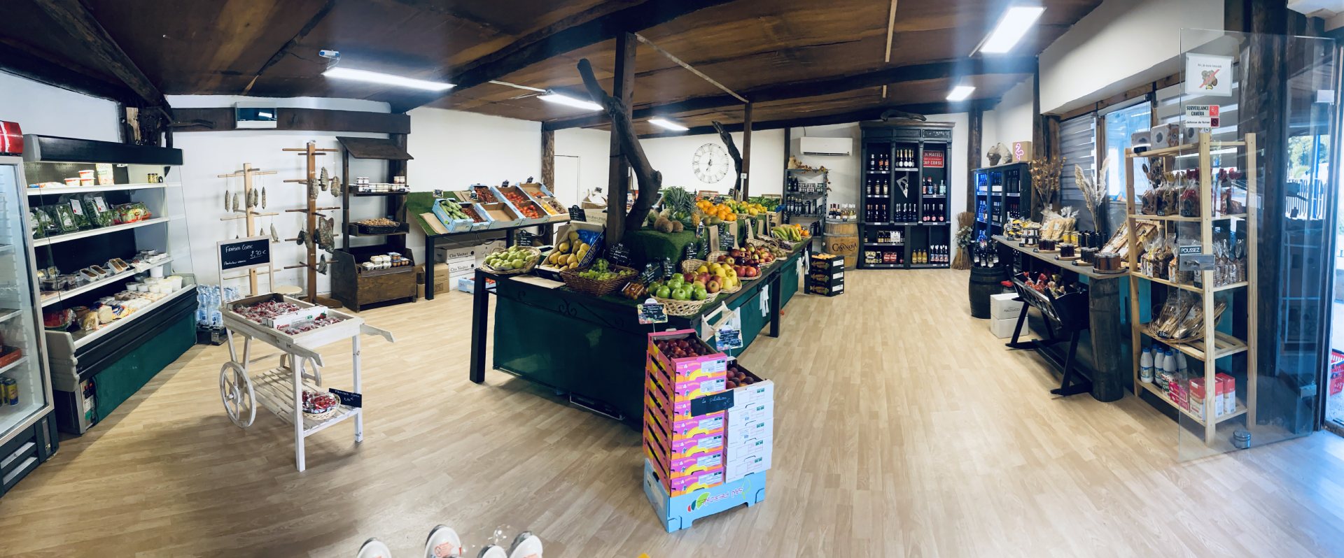 Dans notre épicerie, vous trouverez bien sûr de délicieux produits régionaux tels que des fromages, des gâteaux à la farine de châtaigne ou encore de la charcuterie comme notre figatelli, produit corse par excellence, mais aussi des fruits et légumes frais et de saison.